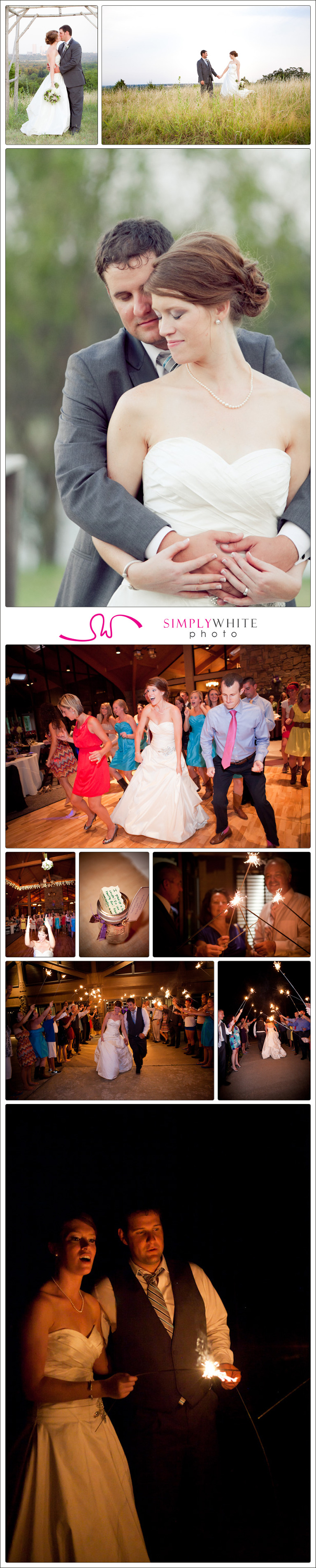 While the guests were enjoying their cake, Anne and Johnathan headed outside for some quiet moments on a hill overlooking downtown Tulsa. They even scared up several deer who bounded off into the brush. Later, they rejoined the party on the dance floor and the real boot-scootin’ fun began. The dancing lasted late into the night, until finally friends and family gathered with sparklers and gave them a big send off. Who could blame Anne and Johnathan when they snuck back inside for some more dancing and fun? It was a great celebration! Congrats to this wonderful couple! _ Kelly