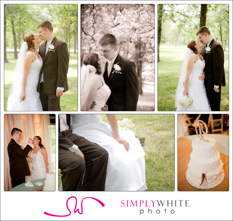 About 50 of their close friends and family came to see them exchange vows. Afterward, they found a bountiful and delicious buffet lunch from the lodge’s chef awaiting them. The tables were set with hydrangea bouquets in twine-wrapped mason jars, creations of Flowergirls of Tulsa. Background music came courtesy of Brian’s brother and best man, Chris, and his Relevant Sound Company. The three-tiered cake, wearing modern dots and lacy squiggles, came from Reasor’s Bakery. The reception was relaxed and gave the couple plenty of time to circle the tables, chat with old friends and introduce each other to new friends. Through it all, Danielle and Brian radiated a happy calm. When we went outside for a few photos, they stood hand in hand, gazing at the scenery. “I could just stay here all day,” Danielle said. Her new husband smiled his contented agreement. Congratulations to this happy couple! _ Kelly