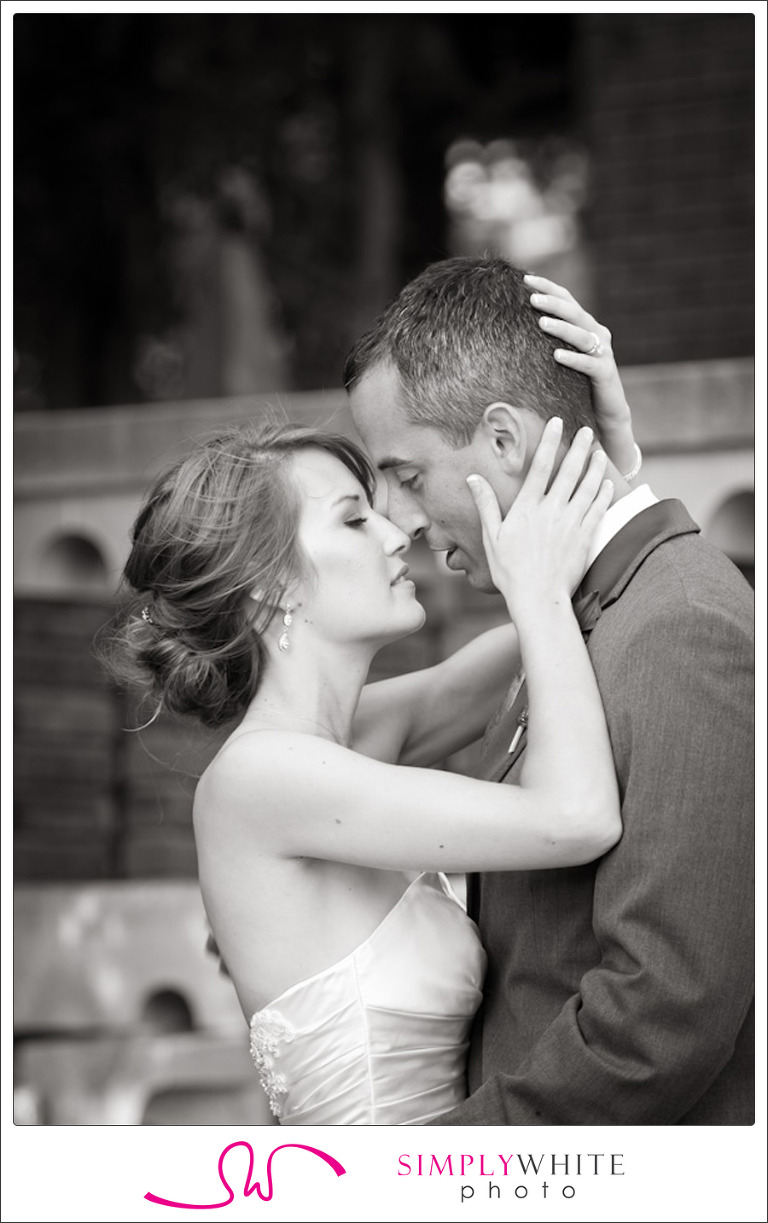 It was an intimate gathering of family and friends who came to see these two exchange vows. Michael and Whitney opted to see each other before the ceremony, and both looked absolutely stunning as they turned for that first look. The form-fitting bodice on Whitney’s gown was set off by a long flowing train and a bold purple and white bouquet. Michael was dashing in a grey suit and pale grey tie. They hadn’t seen each other for a week, and both seemed so happy to wrap their arms around each other again. The reveal allowed us to get family photos finished before the ceremony and even some time to grab some super sweet shots of the two of them. They just had so much love in their eyes.